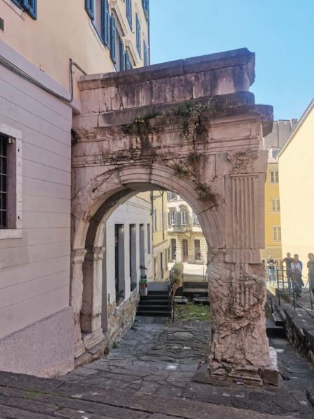 Med povratkom nas je Sergio popeljal mimo slavoloka Arco di Riccardo, ki je edini preostali del mestnega rimskega obzidja, zgrajenega v letih 30 pr.