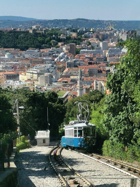 Tram de Opcina je ponovno na voljo potnikom in seveda nas je Sergio popeljal na zaključni izlet, ki ga ne bomo pozabili. Zbrali smo se v Sežani, se z nekaj avtomobili zapeljali do Opčin, ter se v nadvse prijetnem vzdušju zbrali v trafiki, kjer je vsak lahko dal v prakso, kar se je naučil na tečaju: kupiti vozovnico do Trsta, vprašati po voznem redu… Smeha seveda ni manjkalo niti na vagonu, kjer smo prebrali čisto vse napise, jih prevedli, malo po domače … in uživali v bingljajoče piskajoči vožnji tega zgodovinskega vlakca ob čudovitem razgledu čez mesto in zaliv.