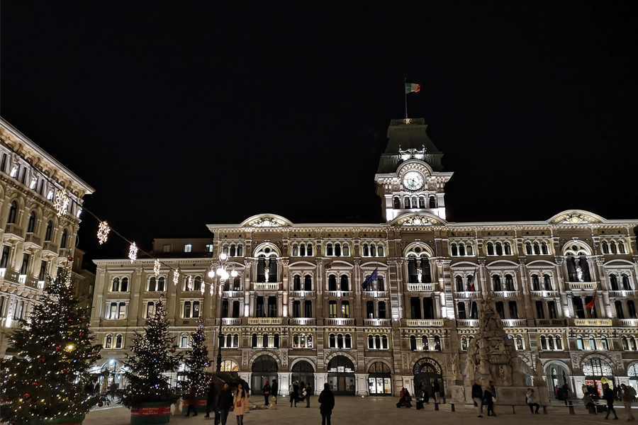 Naša zadnja odprava je štartala iz zbirnega mesta v Sežani do Opčin, kjer smo se v božično okrašeni lokalni kavarni spoznavali s kulturo pitja kave in navadami tamkajšnjih italijanskih gostov. Tako se je začelo naše skupno spoznavanje utripa italijanske dežele. Po okušanju kav smo se morali znajti z razbiranjem urnika avtobusov, ki vozijo v center Trsta in takoj za tem z nabavo avtobusnih vozovnic. Sledilo je vkrcanje ter poučna vožnja mimo slikovitih razglednih prizorov vse do samega središča mesta. Ob pešačenju po ulicah vzdolž zaliva smo začutili praznično vzdušje, tako da sta se ob soju lune sprehod po Božičnem sejmu in okušanje tradicionalnih tržaških specialitet zdela že skoraj pravljična. Čeprav so nas sunki burje dodobra prezebli, nas je vseeno fascinirala tudi izdatna okrasitev osrednjega tržaškega trga »Piazza d’Unita« z gozdom smrečic in morjem lučk. Proti mrazu seveda pomaga tudi srebanje tipičnega kuhanega vina »Vin Brulè«, ki se mu nismo mogli upreti.