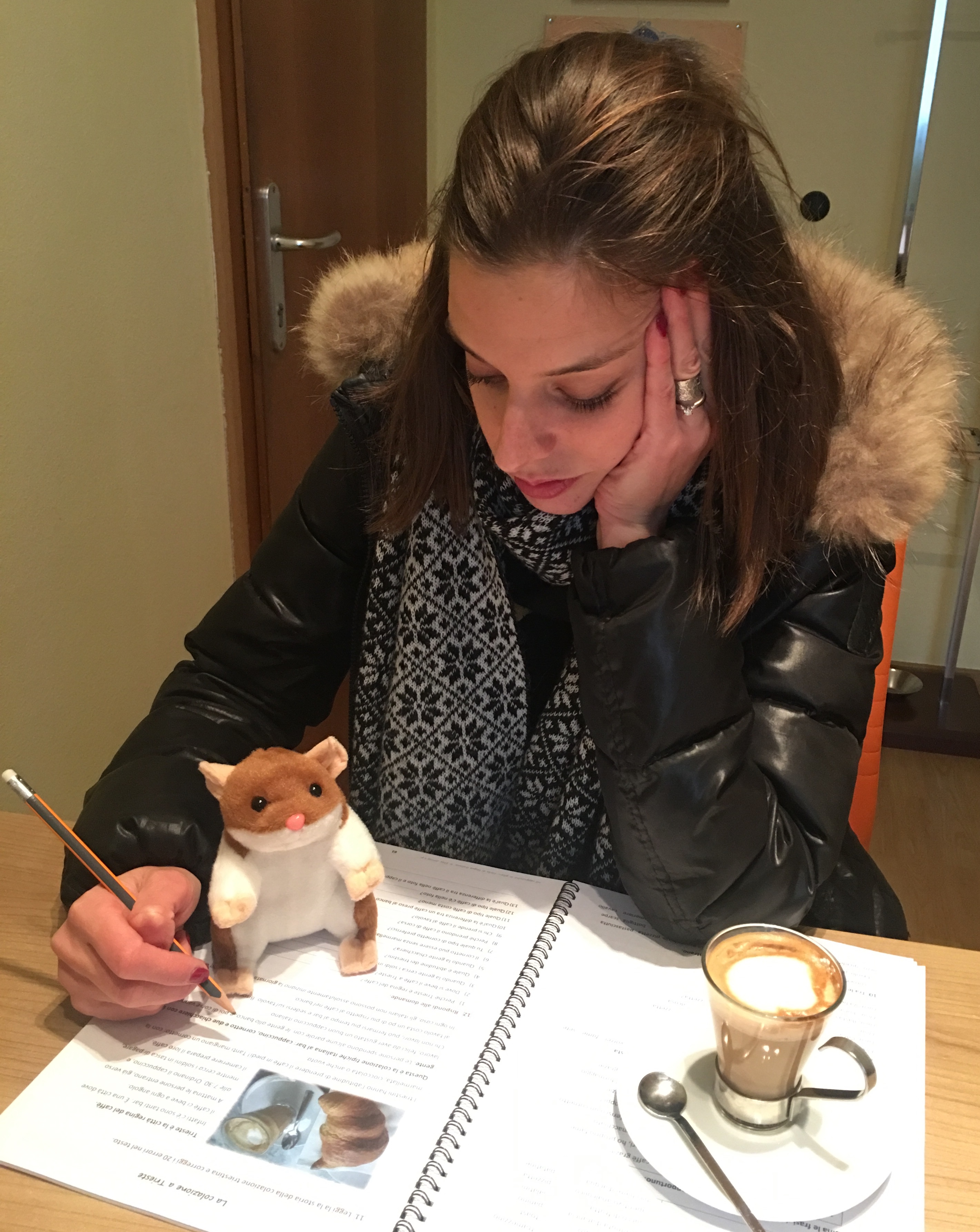 Skratka, Sergio je hrček, ki ne hrčka le hrane, ampak tudi znanje. Redno dela domače naloge, ker se zaveda, da le z domačimi nalogami lahko utrdi učno snov. Redno hodi na predavanja, ker se zaveda pomena utrjevanja izreke in pridobivanja samozavesti. Prav tako se rad druži – njemu najljubši so rojstni dnevi, ker poleg veselja, smeha in druženja pomenijo tudi kaj dobrega za pod zob. Priročen je tudi, ko uspešno na fotografijah nadomešča vse tečajnike, ki jim fotografiranje ni ljubo. 🙂